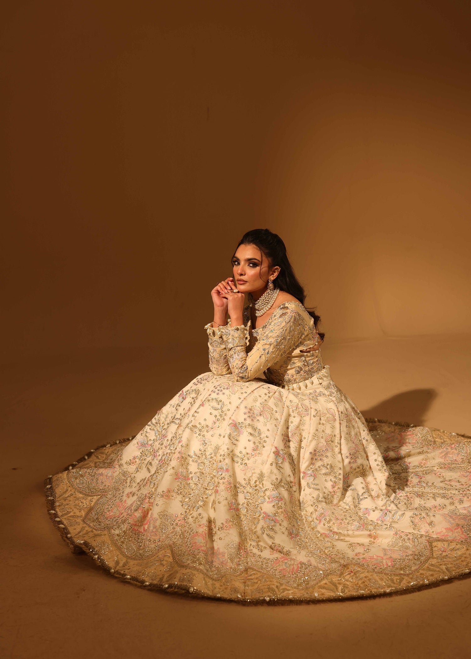 Elegant and understated, Silk Beige is a masterclass in refined luxury. Hand embellishment on the raw silk front body and sleeves highlights the fabric’s natural sheen, while fourteen embroidered organza panels introduce texture, depth, and architectural elegance.