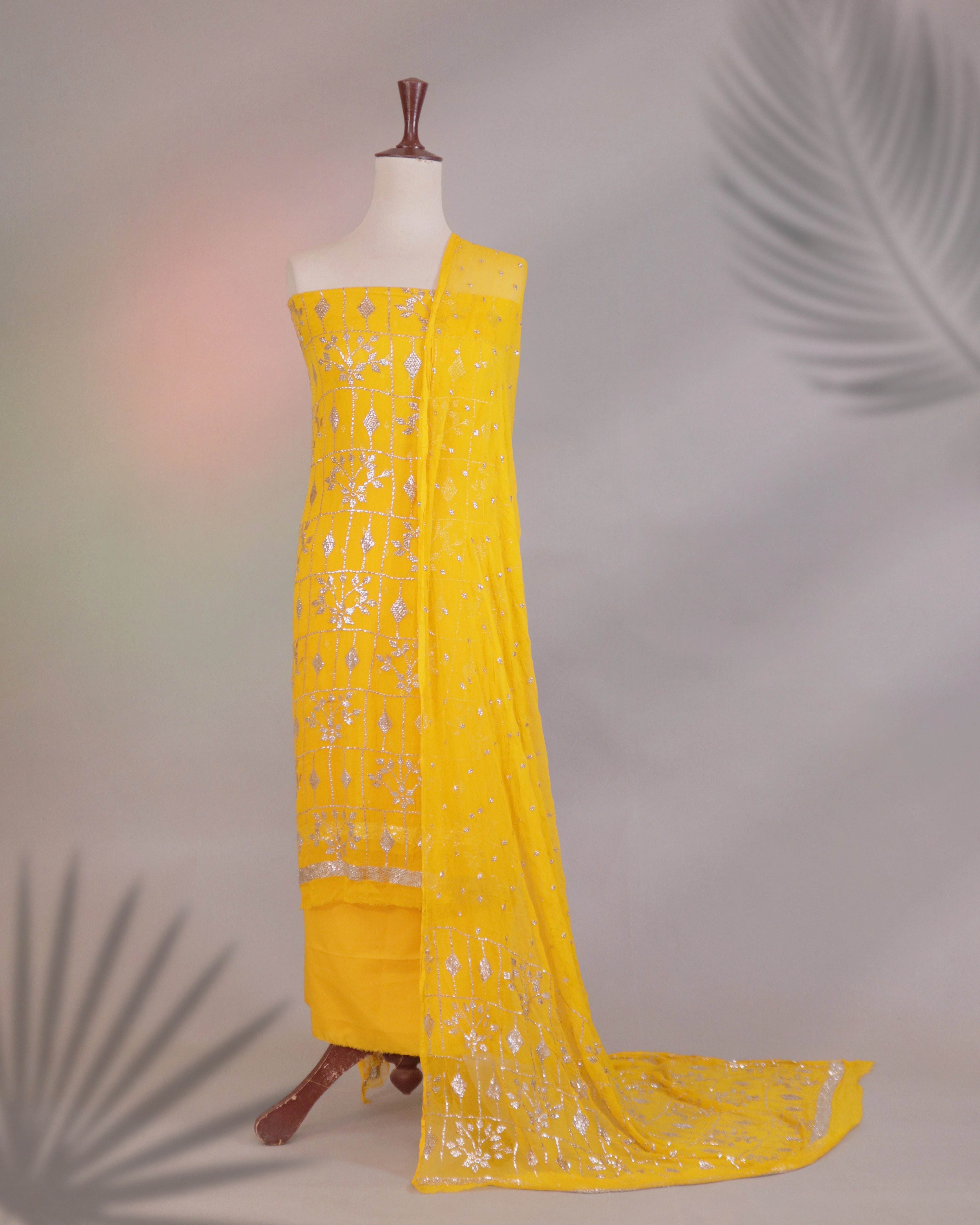 Elegance takes a graceful turn with Lumora, the newest addition to Highway Fashion’s Chapter 2. Crafted in chiffon with intricate Mukesh work, this 3-piece unstitched ensemble blends tradition with contemporary refinement. The lightweight, ethereal texture of chiffon is adorned with shimmering Mukesh details, perfect for festive evenings and elegant occasions.