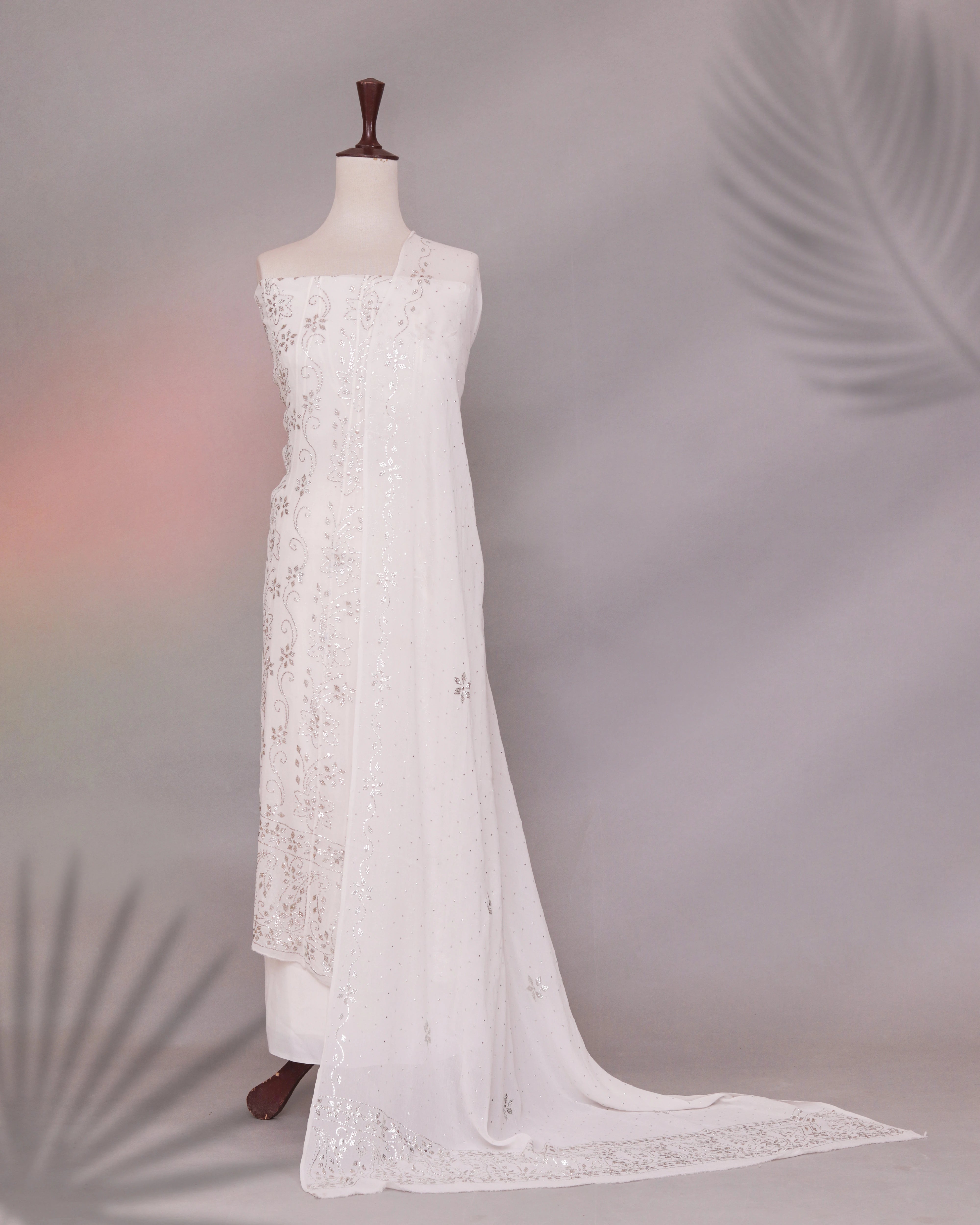 Elevate your occasionwear with Shanaya, a stunning creation from Chapter 2 of the Highway Fashion LookBook. This unstitched 3-piece ensemble celebrates timeless charm with the grace of chiffon and the sparkle of pure mukesh craftsmanship.
