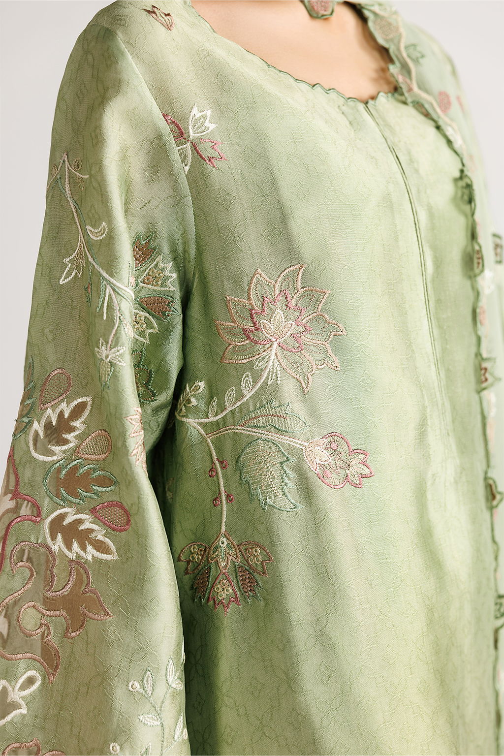 Sleeves: Embroidered Laser Cut Pure Jacquard Sheesha Silk