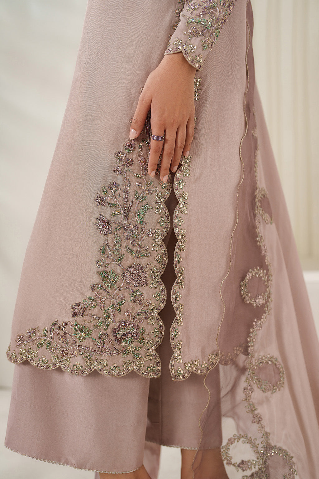 Front Neckline: Embroidered Organza With Adda Work (1 Pc)