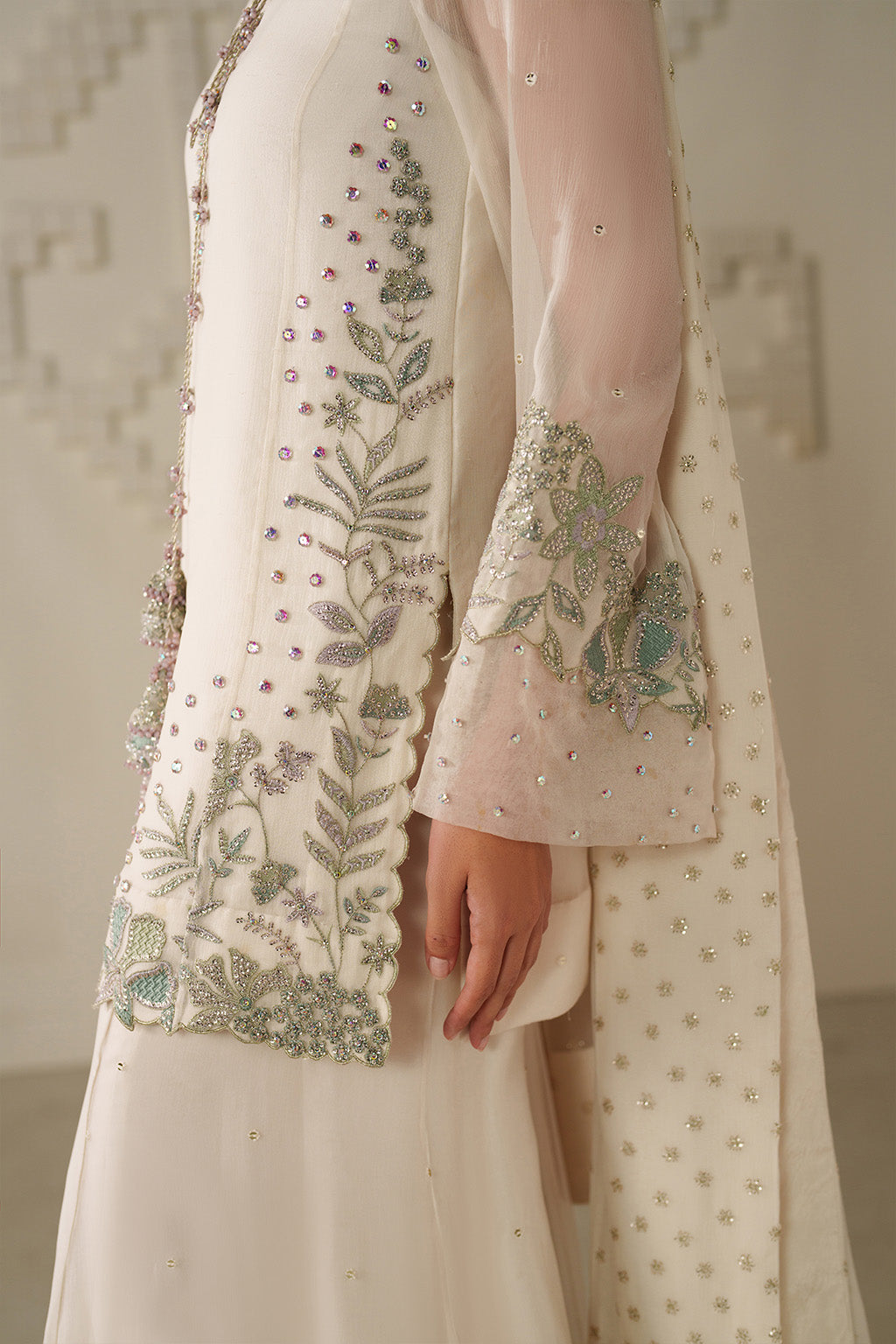Sleeves Patch: Dyed Organza With Adda Work