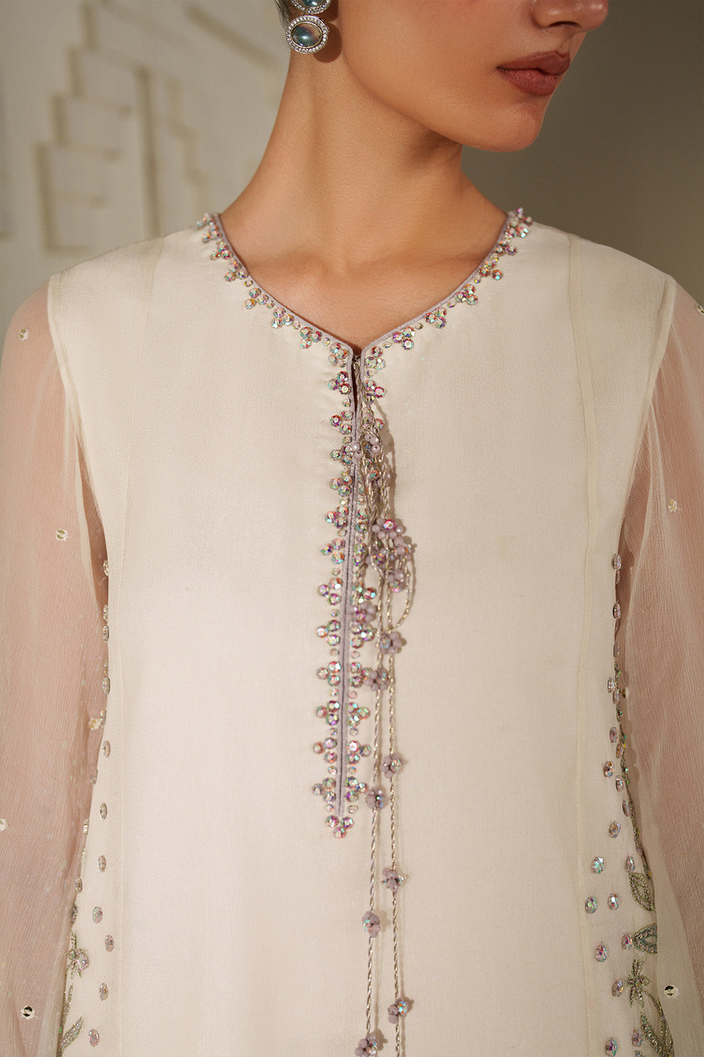 Shirt Front: Embroidered Chiffon With Adda Work
