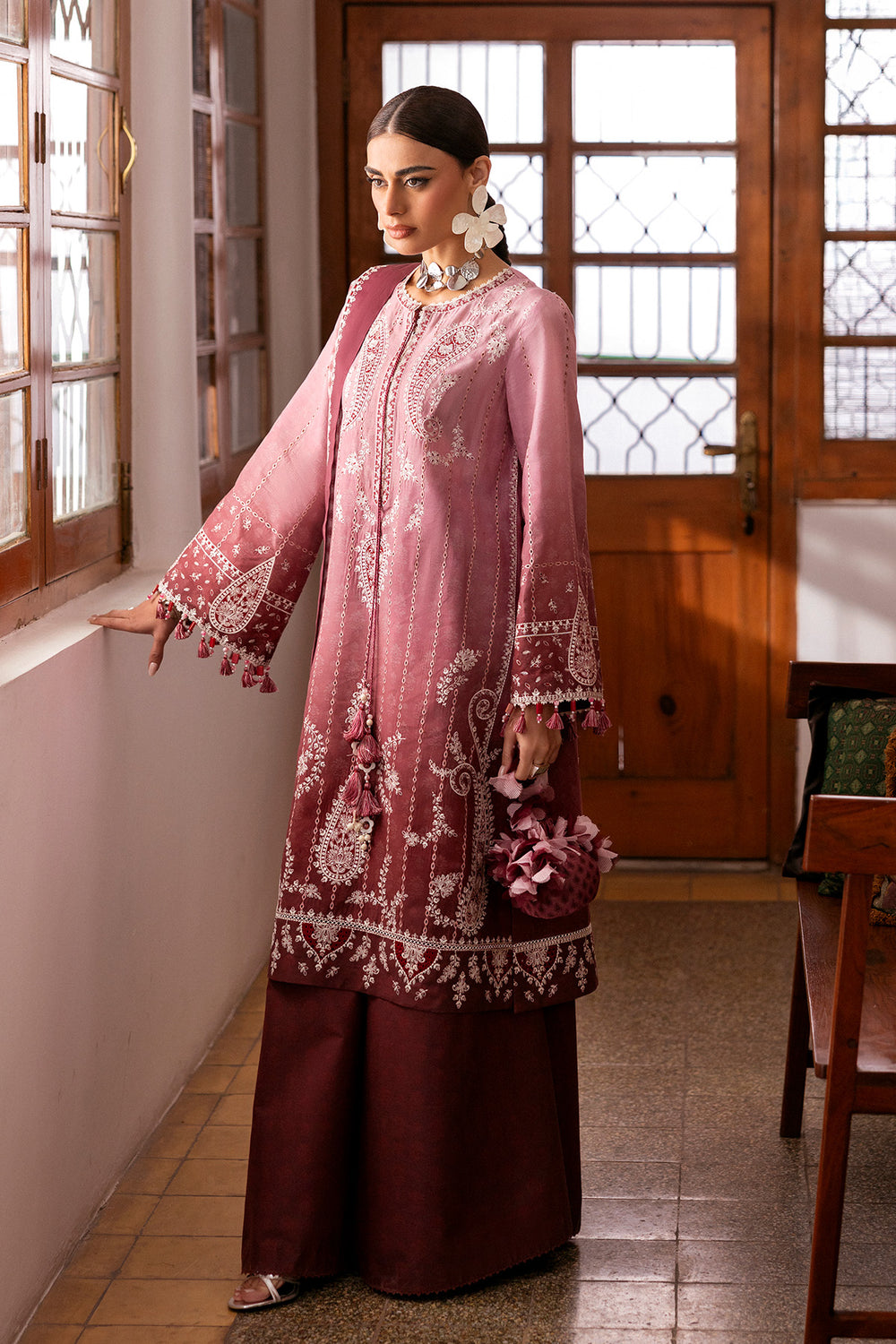 Embroidered Luxury Lawn SL26-D08 combines sophisticated craftsmanship with contemporary design. This three-piece ensemble features intricately embroidered digital printed appliqué detailing on the lawn front and sleeves, complemented by ornate borders on the front and back. The digital printed lawn back provides visual interest, while the cambric bottom ensures durability and comfort. Complete with a premium voile dupatta finished with embroidered digital prints, this collection piece delivers refined elegance suitable for formal occasions and celebrations.