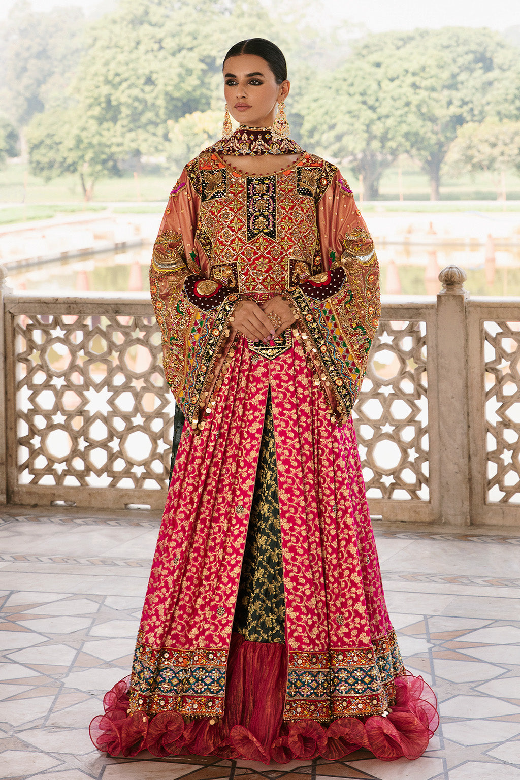 Step into a world of opulence with our stunning dresses meticulously embellished with dabka, Mukesh, sequins, crystals, and Resham detailing.Luxuriate in the richness of tissue,jamawar, and organza, as you embrace a fashion statement that radiates glamour and sophistication. Elevate