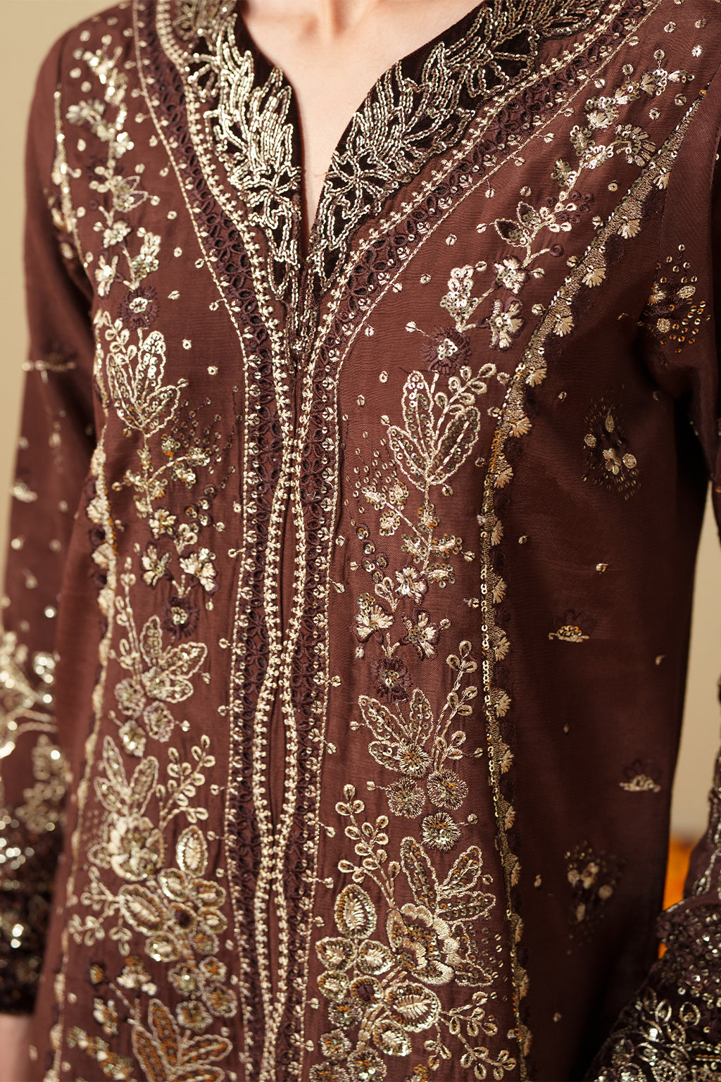 • EMBROIDERED BROWN VELVET FRONT NECKLINE-(1-PC)