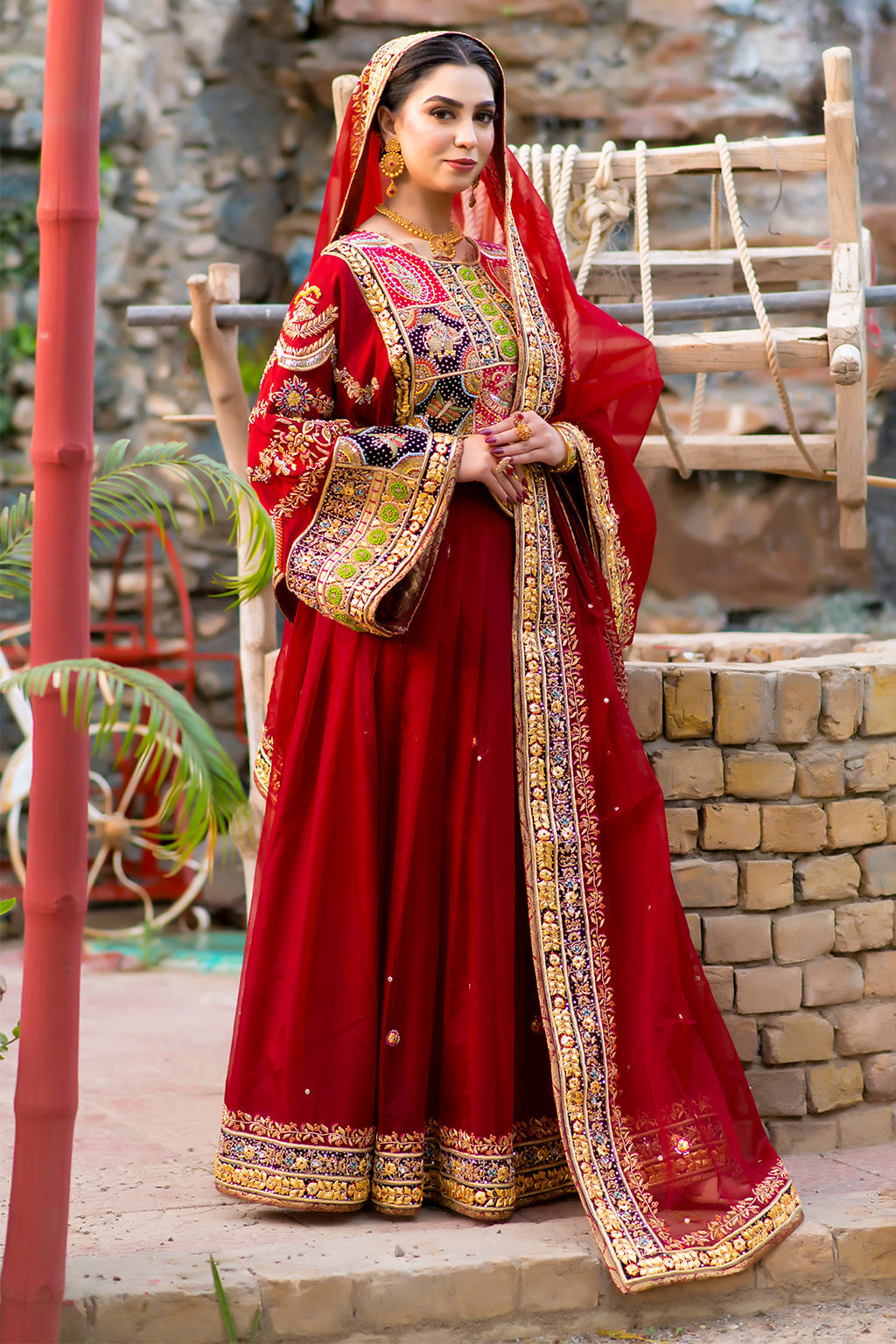 "Dive into the allure of bridal magic! ✨ Our dresses, a fusion of Pathani Dress vibes, bring your wedding dreams to life. Sparkling with dabka, Mukesh, and crystal glam, each piece is a masterpiece. Wrapped in the luxe embrace of raw silk, and Organza, be the bride who steals the spotlight. 💫 Your love story, woven into threads of tradition and chic elegance. Say 'I do' in style!