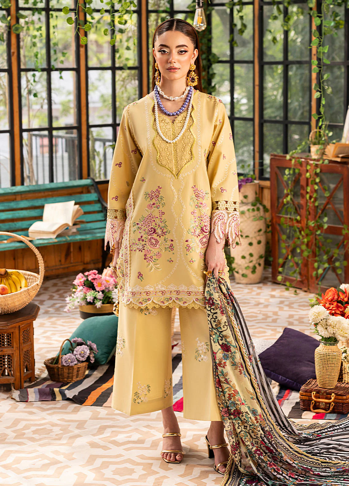 Step into summer sophistication with Rosee, a statement design from Sahane’s Roses De Feu collection. This 3-piece unstitched lawn suit features skillfully dyed and embroidered lawn panels, creating depth and texture throughout the shirt. Paired with a digitally printed chiffon dupatta and dyed lawn trousers, this outfit exudes elegance with a modern flair.