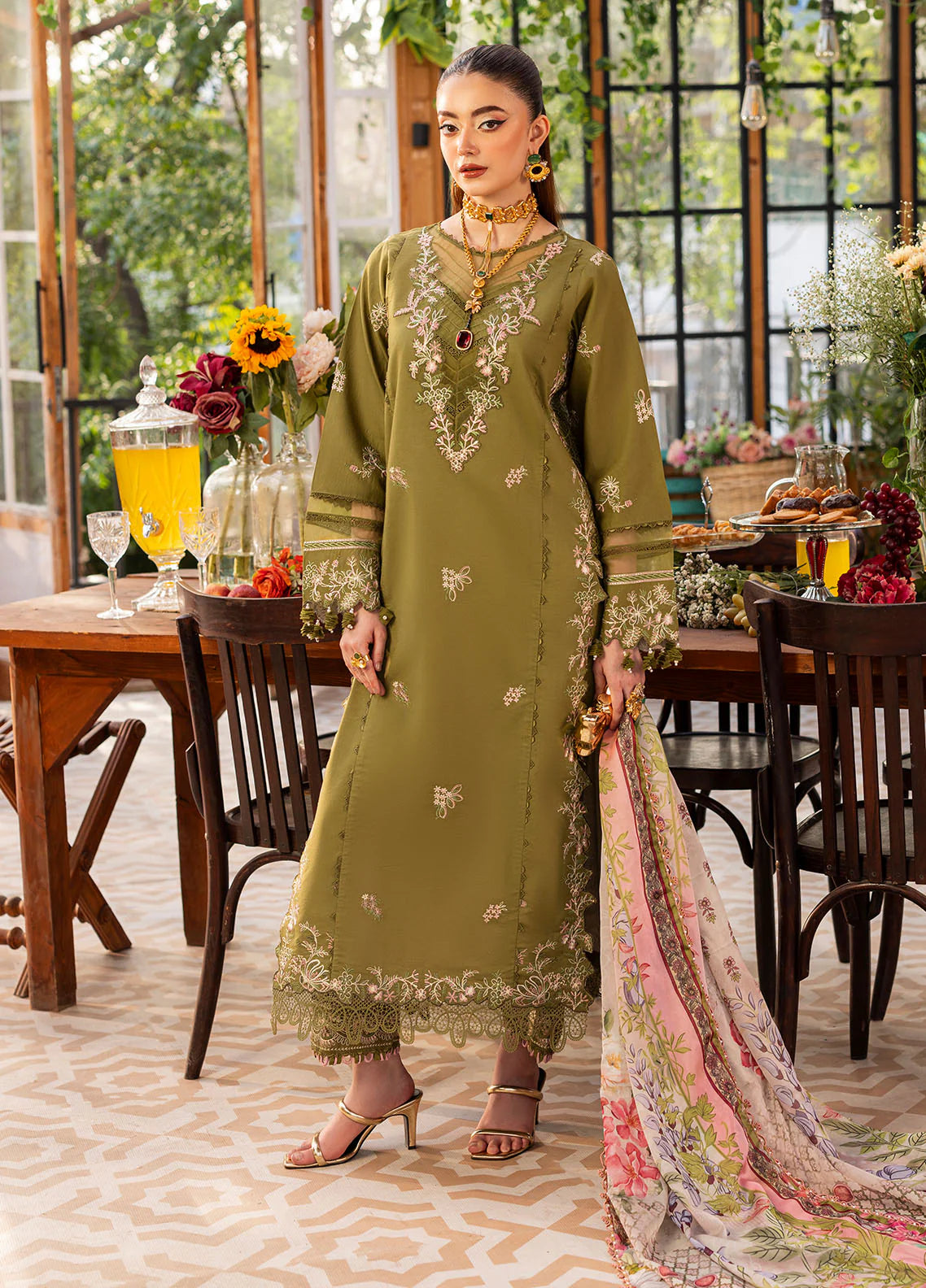 Gracefully detailed and thoughtfully styled, Jardin from Sahane’s Roses De Feu collection is a stunning display of feminine refinement. The set features a dyed embroidered lawn shirt with multi-paneled construction and intricate organza neckline. The sleeves and back carry refined embroidery, enhanced by borders and finishing touches. A digital printed tissue silk dupatta adds graceful movement, while the dyed lawn trousers are elevated with an embroidered border.