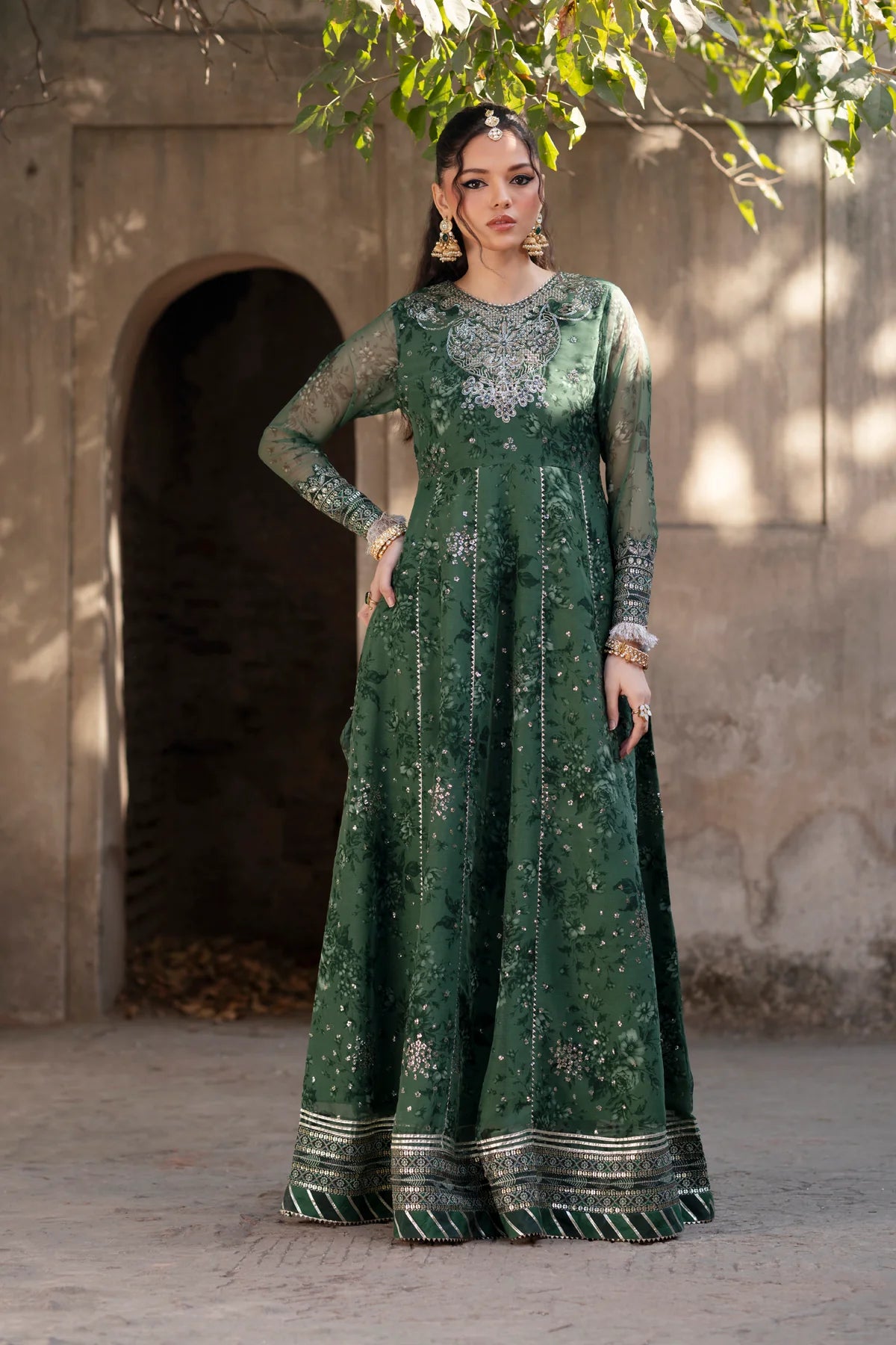 Xenia presents SHAFAQ - An exquisite embroidered and printed chiffon formal dress set featuring: